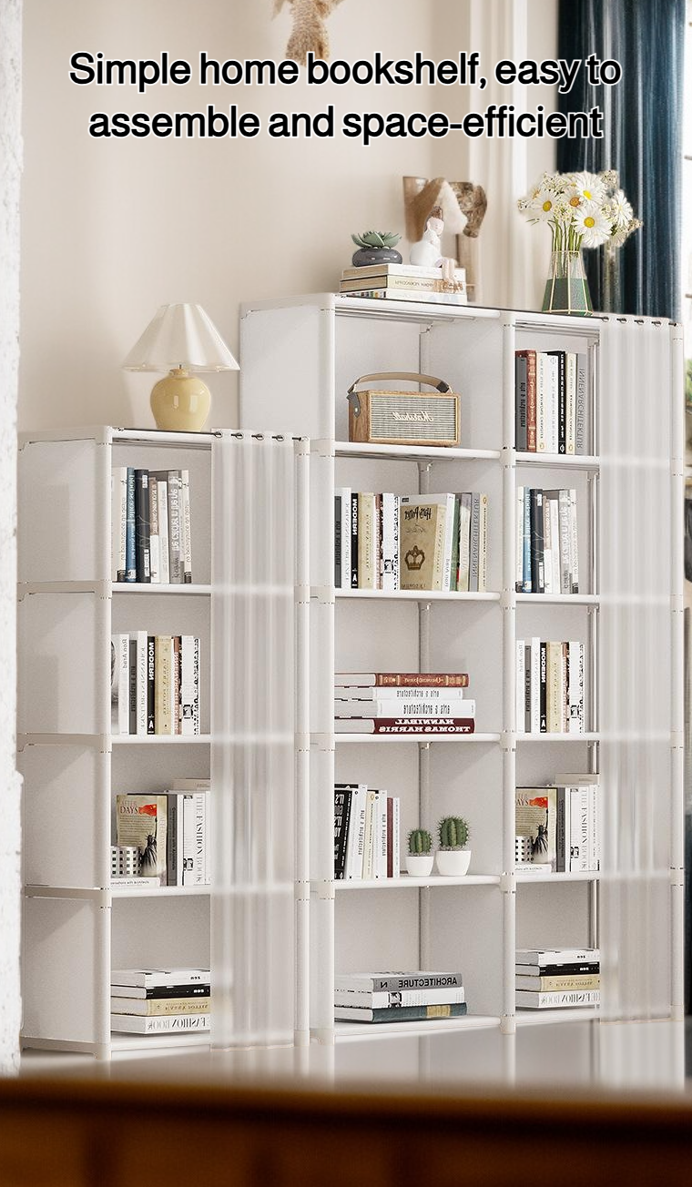 Space-saving multi-layer bookshelf, customizable free combination design, sturdy materials, easy assembly, fits various home styles, ideal for books, decor, and storage.
